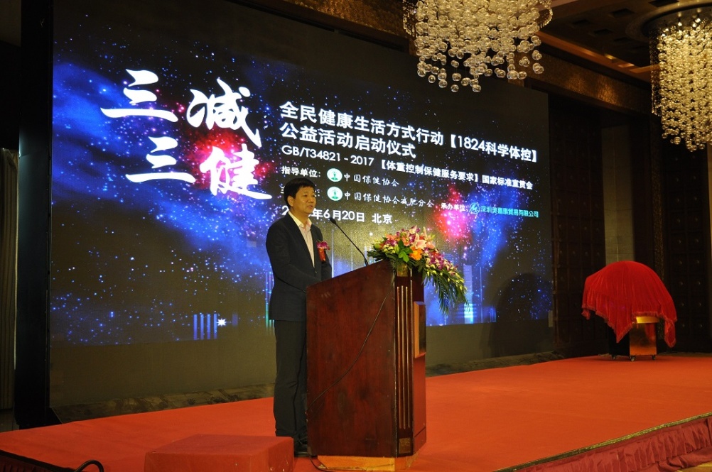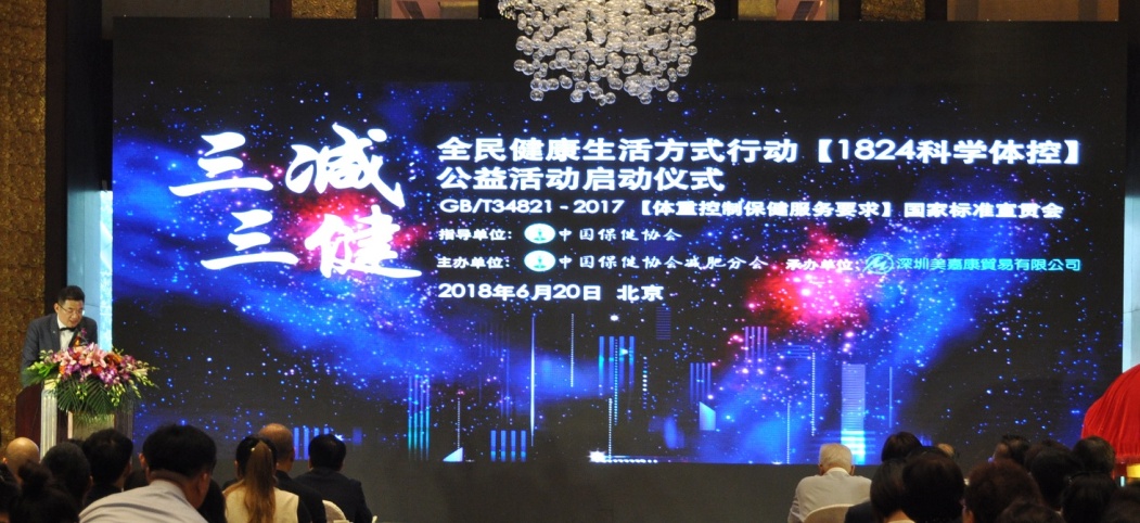 為積極響應(yīng)國家衛(wèi)計(jì)委、體育總局、全國總工會(huì)、共青團(tuán)中央和全國婦聯(lián)共同制定的《全民健康生活方式行動(dòng)總方案(2017-2025)》精神的總目標(biāo),宣傳“減鹽、減油、減糖”的健康理念,提高全民 “健康的口腔、健康的體重、健康的骨骼”的保健知識(shí),以達(dá)到提高人民群眾健康生活水平的目的,同時(shí)為配合《體重控制保健服務(wù)要求》國家標(biāo)準(zhǔn)正式實(shí)施。中國保健協(xié)會(huì)減肥分會(huì)與深圳美嘉康貿(mào)易有限公司于2018年6月20日成功舉行了“‘三減三建’全民健康生活方式行動(dòng)1824科學(xué)體控公益活動(dòng)啟動(dòng)暨GB/T 34821-2017 《體重控制保健服務(wù)要求》國家標(biāo)準(zhǔn)宣貫會(huì)”。